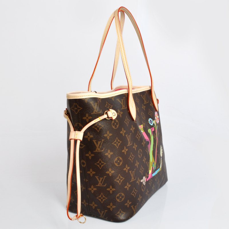 This replica Louis Vuitton Murakami Moca Neverfull MM M95560 includes a serial number and Louis Vuitton logo, Louis Vuitton dust bag, Louis Vuitton authenticity card, Louis Vuitton care booklet, and Louis Vuitton tag. All markings and accessories are exact.
