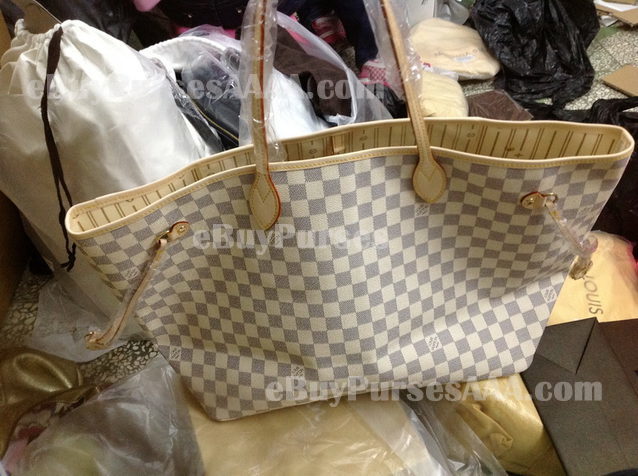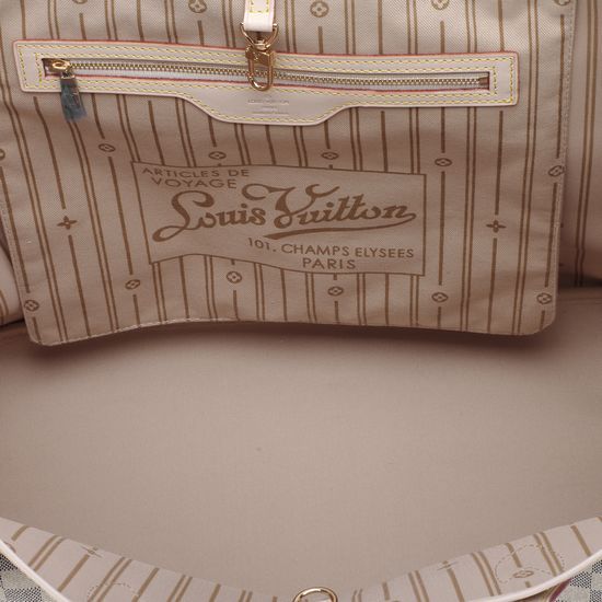Each Louis Vuitton Damier Azur Canvas Neverfull GM N51108 replica comes with a serial number and Louis Vuitton logo, Louis Vuitton dust bag, Louis Vuitton authenticity card, Louis Vuitton care booklet, and Louis Vuitton tag. All markings and accessories are exact.