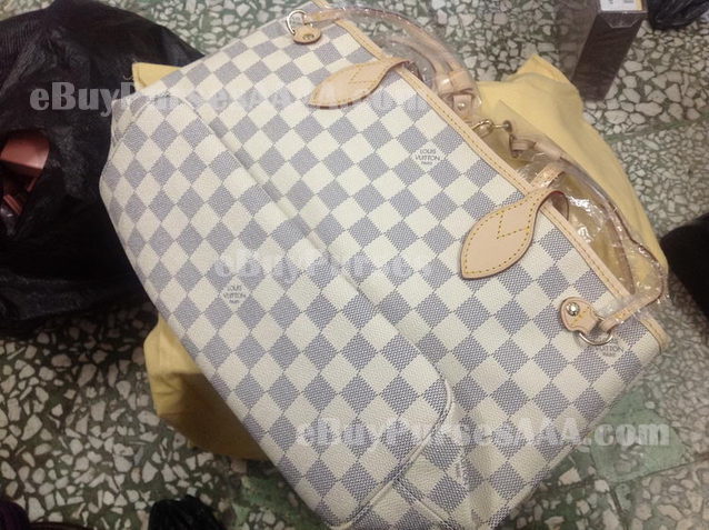 Each replica Louis Vuitton Damier Azur Canvas Neverfull PM N51110 includes a serial number, Louis Vuitton authenticity card in envelope, Louis Vuitton care booklet, and Louis Vuitton tag, Louis Vuitton dust bag.