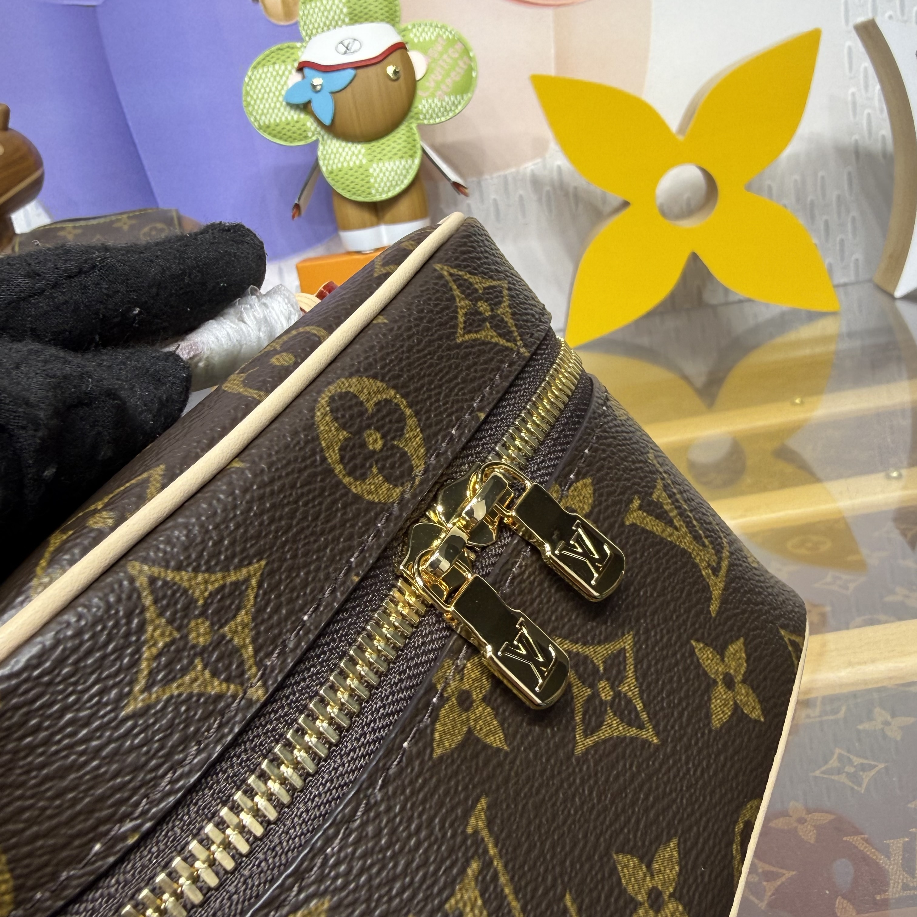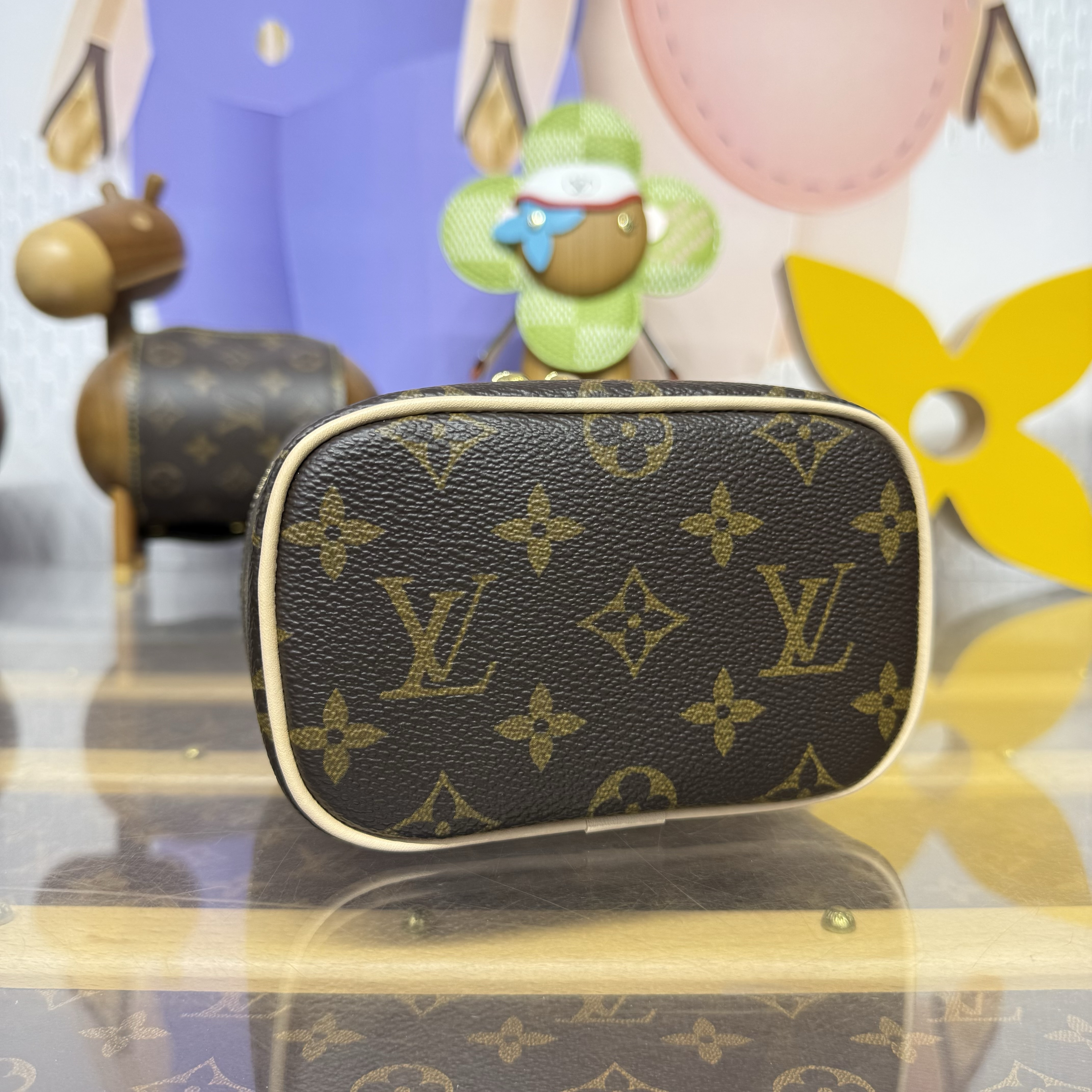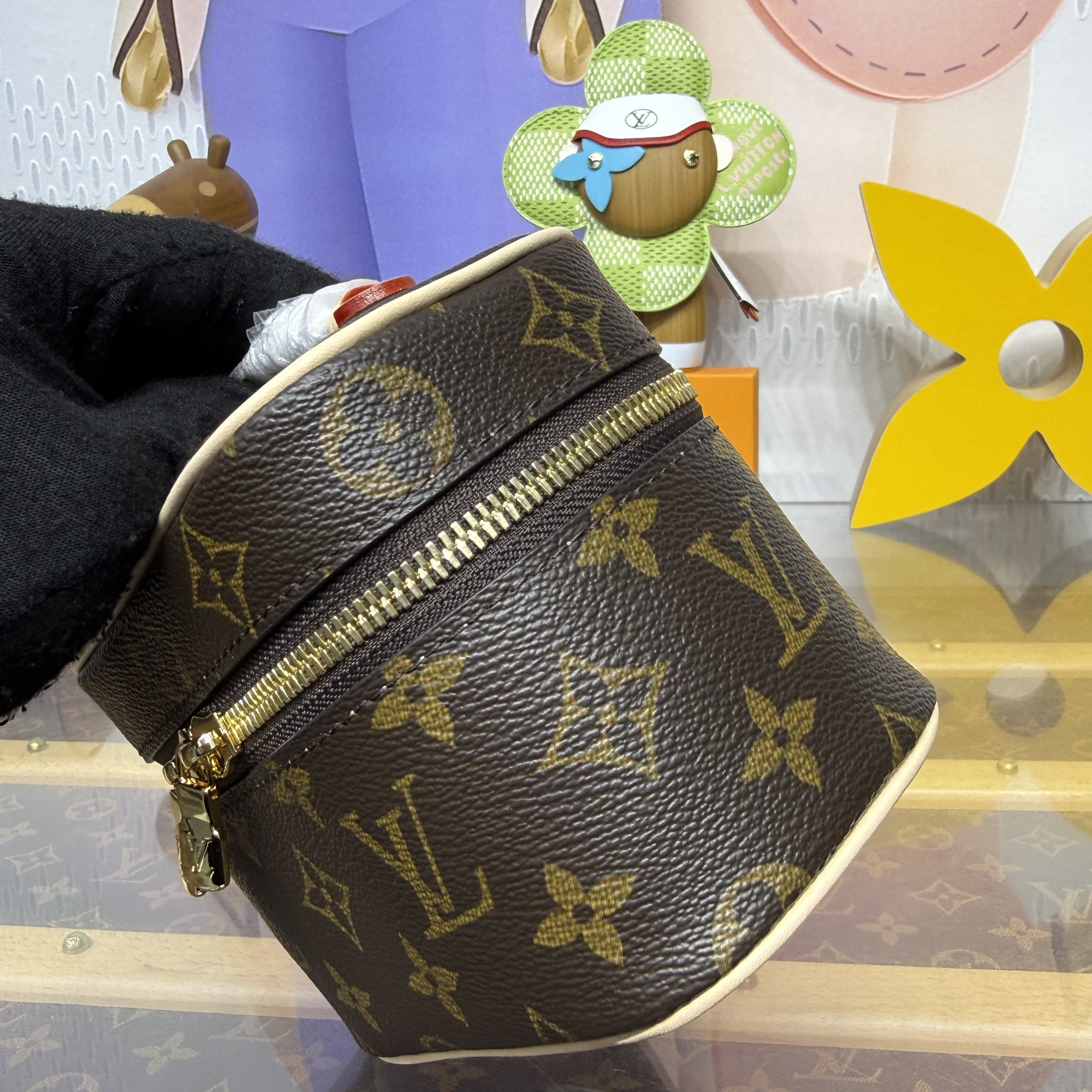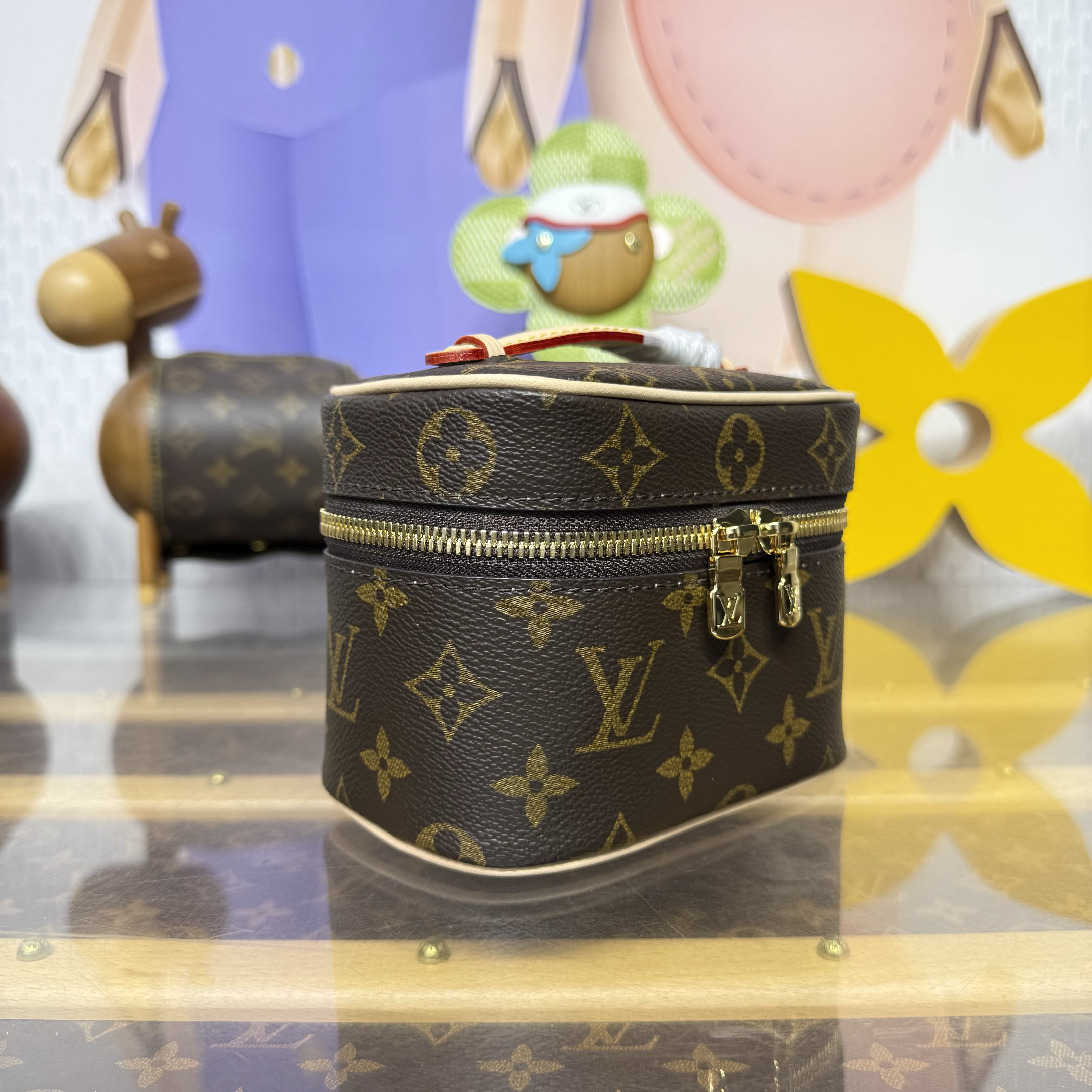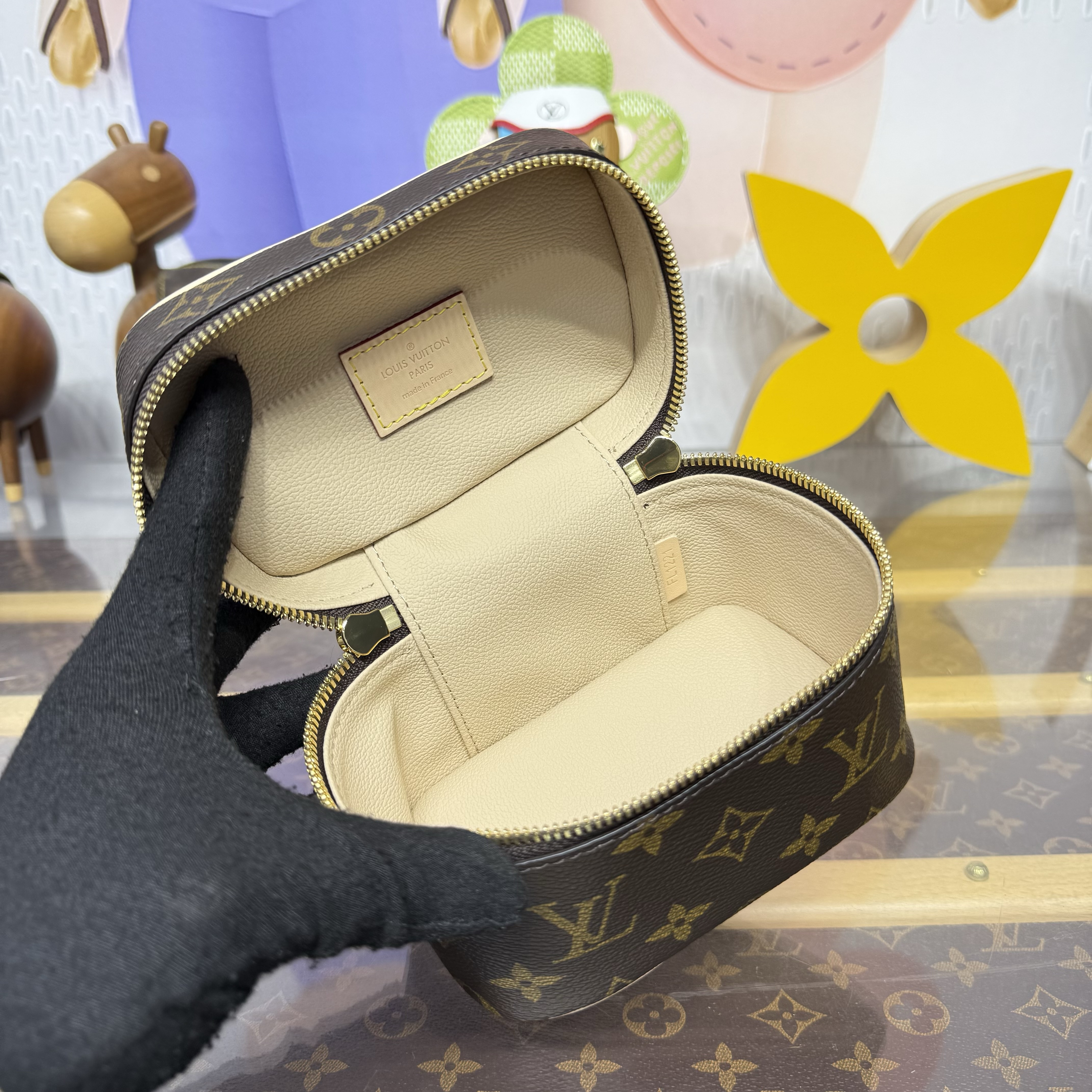 Small and surprisingly roomy, the Nice Nano vanity case can be used to store beauty essentials like nail polish or lipstick in a bathroom, or as a bag inside a bag to keep small items organized. Fashioned from Monogram canvas with a top handle that flattens for easy packing, it easily fits into even tight spaces.