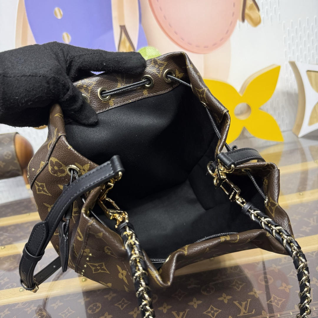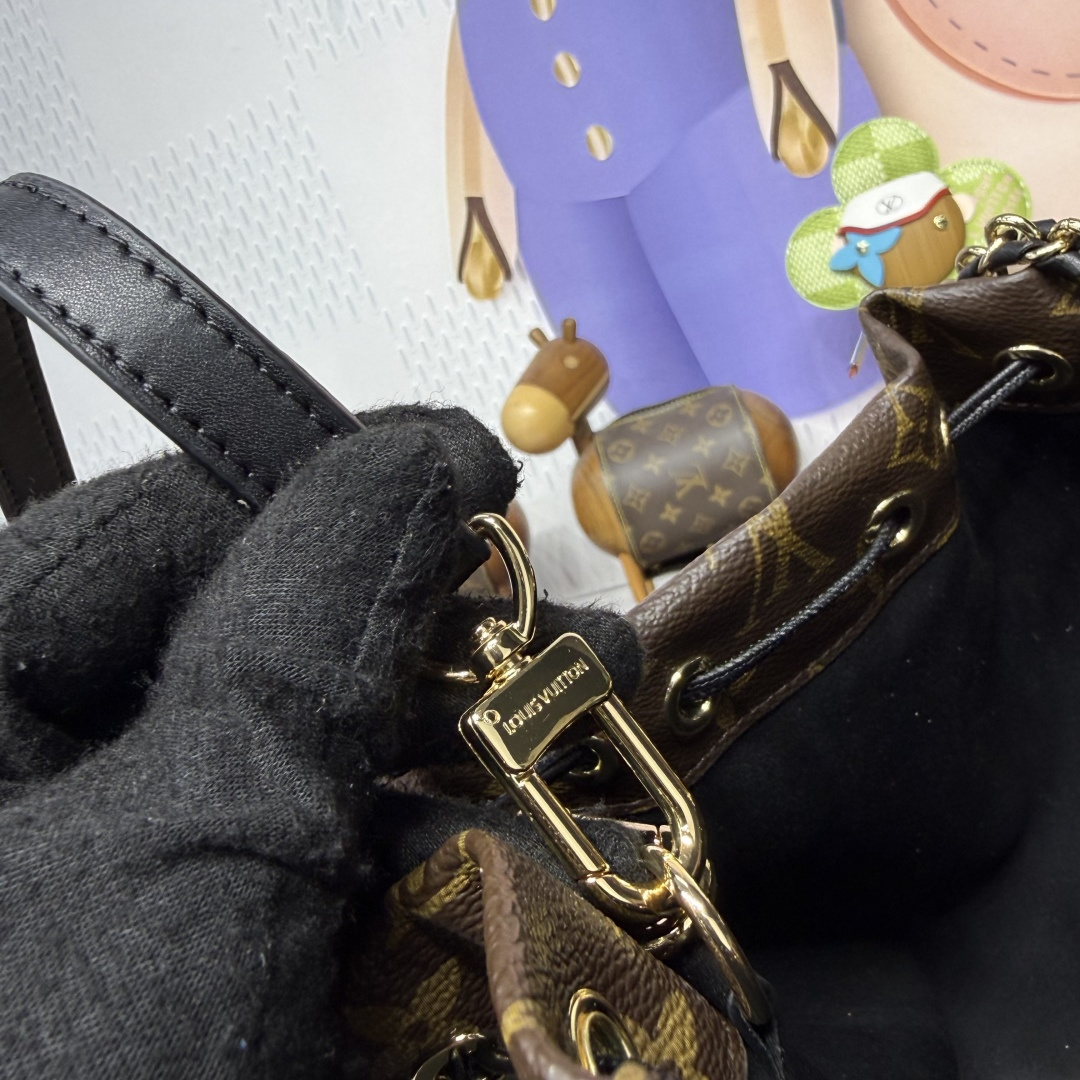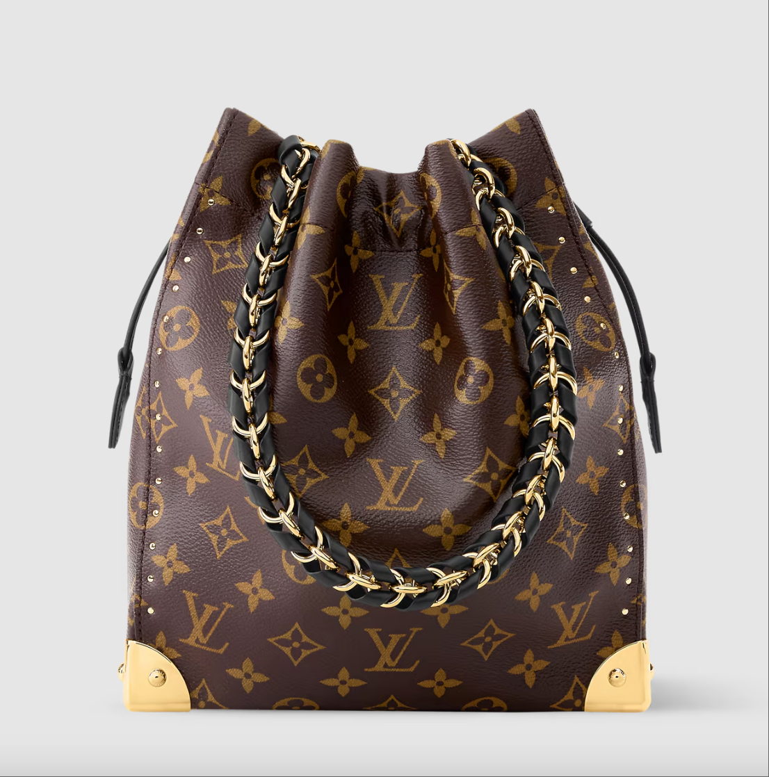 Introducing the Noé Trunk, an elegant bucket-shaped style that is both timeless and contemporary. This edition is made from signature Monogram canvas adorned with sleek gold-toned hardware, including trunk-inspired corners that nod to the House’s iconic travel heritage, as well as a removable braided chain. It is designed with a drawstring closure to keep valuables secure inside.