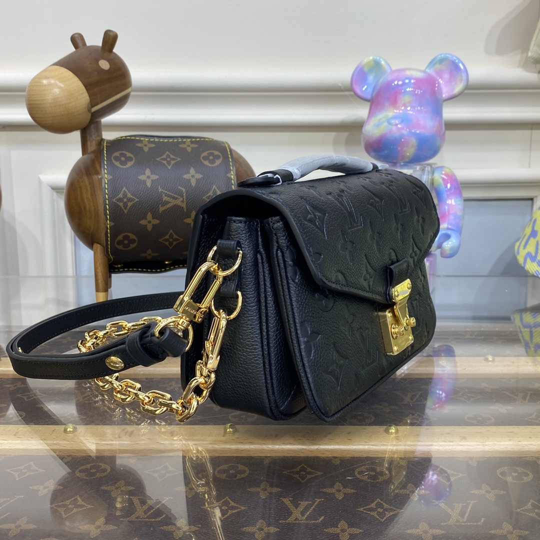Made from embossed Monogram Empreinte leather, the Pochette Métis handbag blends signature House style and contemporary detailing. The on-trend East-West silhouette is highlighted by a heritage S-lock and removable short chain, both cast from gold-finish metal. With its well-organized interior and adjustable smart strap, this compact bag adapts perfectly to active lifestyles.
