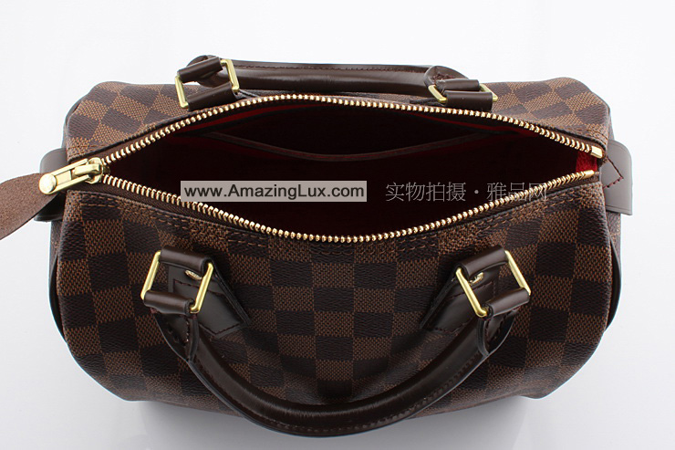 Each replica Louis Vuitton Damier Ebene Canvas Speedy 25 N41532 includes a serial number, Louis Vuitton authenticity card in envelope, Louis Vuitton care booklet, and Louis Vuitton tag, Louis Vuitton dust bag.