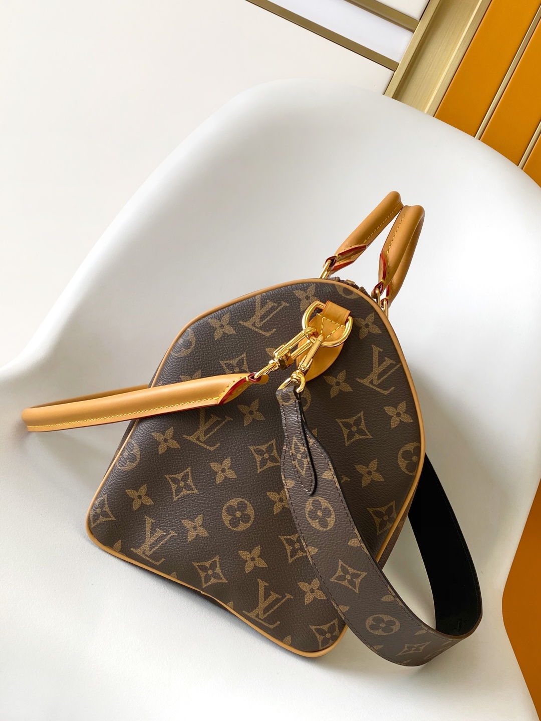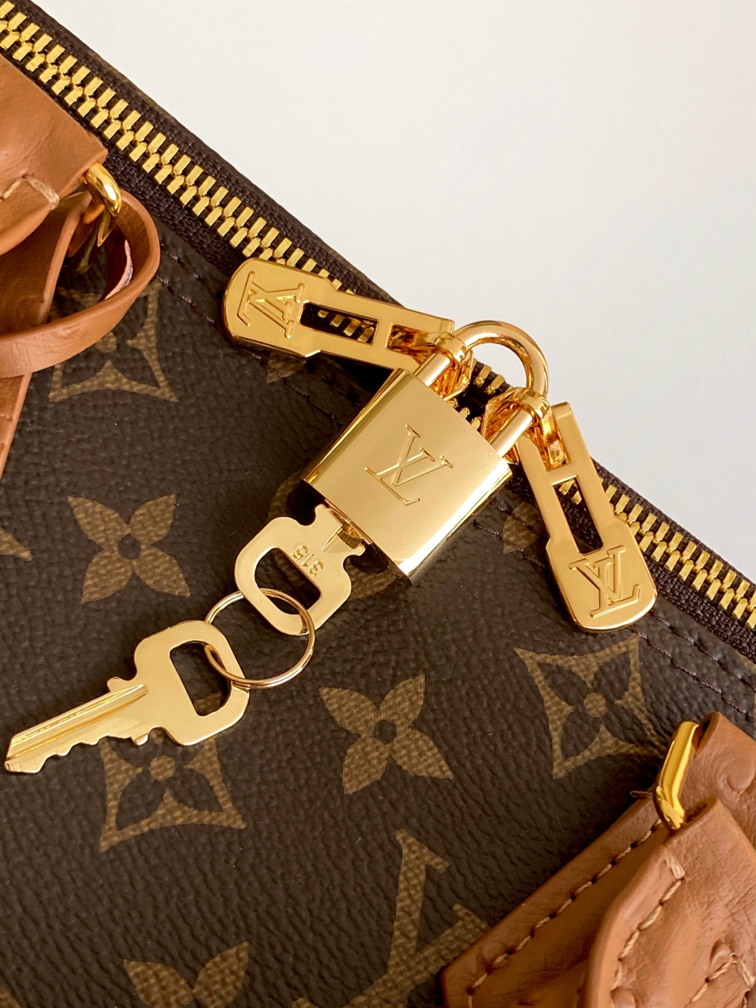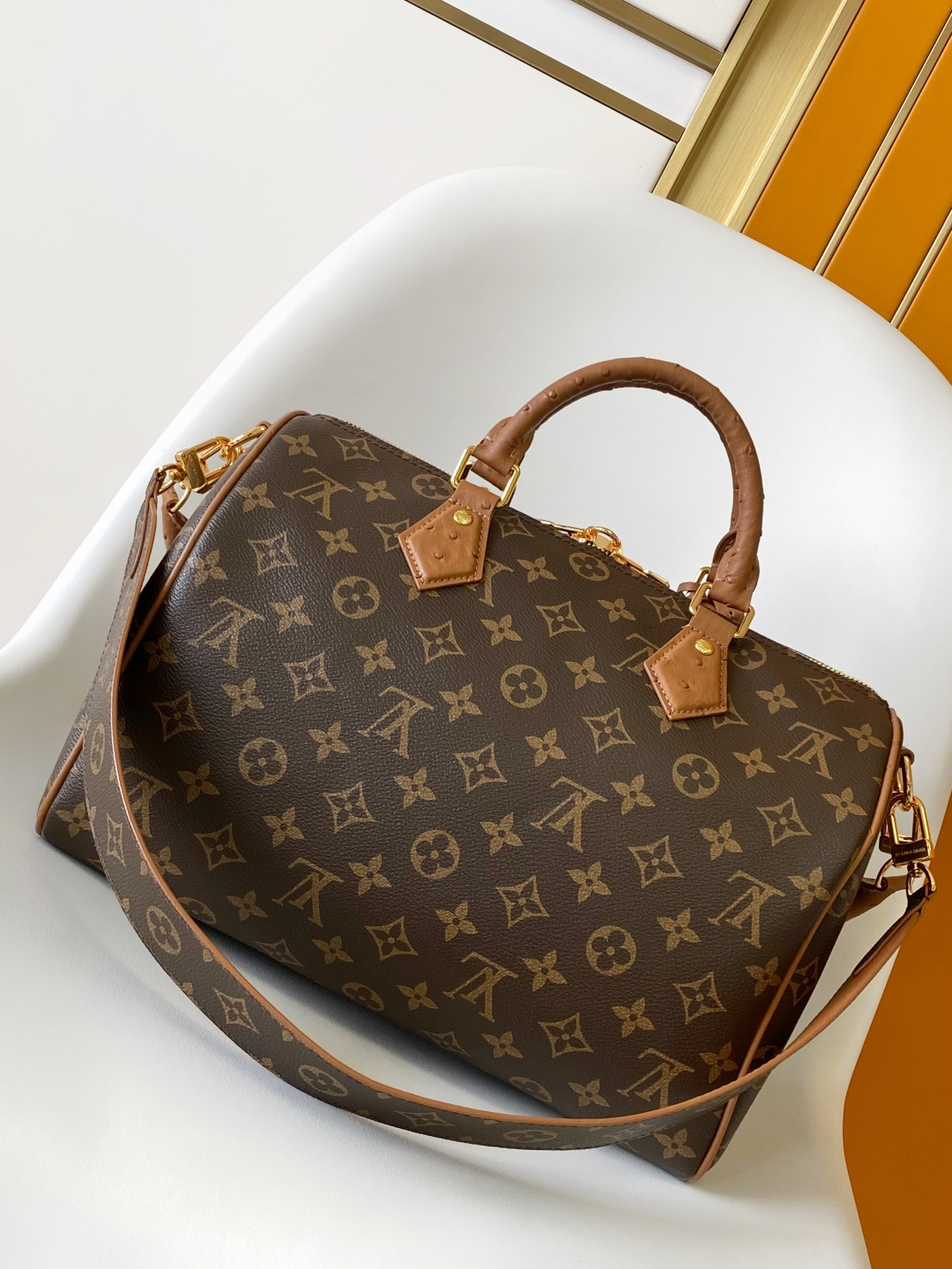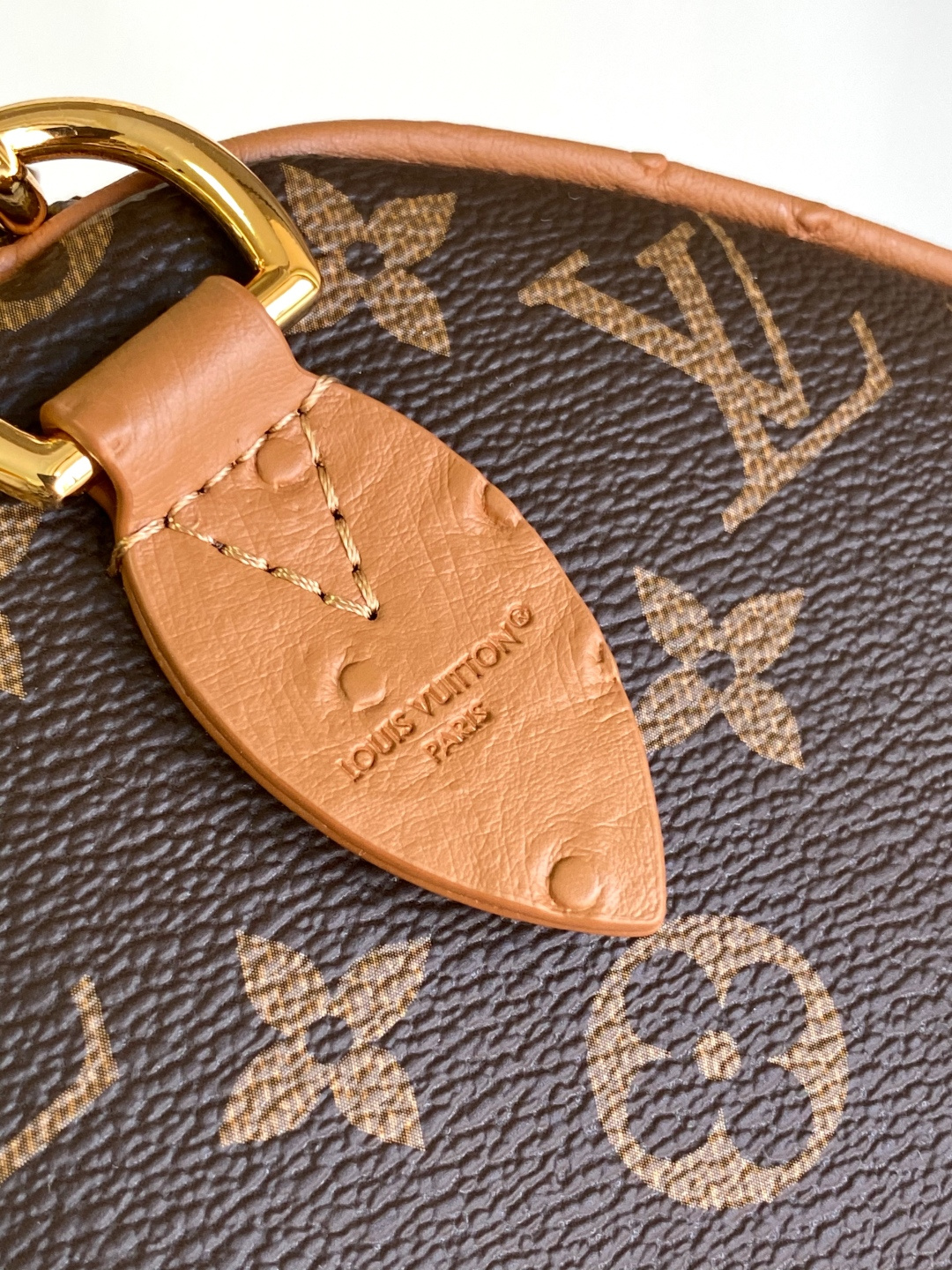 This Speedy Soft 30 Boho stands out with a plethora of embellishments, from an exclusive ostrich-leather trim to the colorful pearl chain. Crafted from the House’s iconic Monogram coated canvas, it has a contrasting leather lining complete with an internal zipped pocket. It is finished with a signature key bell and an address tag, and can be worn multiple ways thanks to the new shoulder Toron handle.