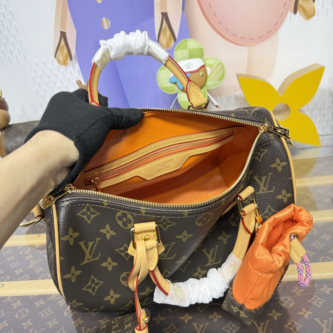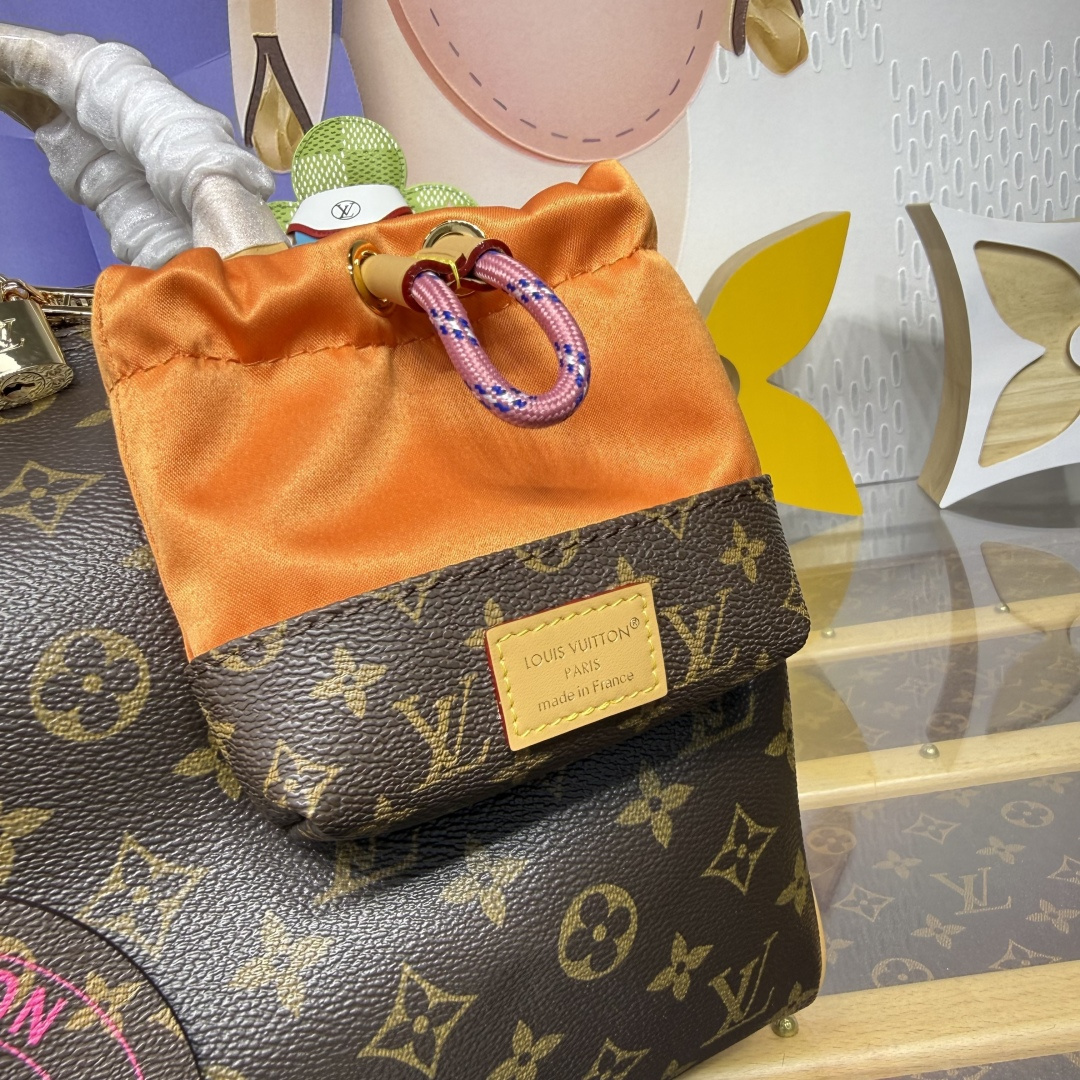 The Paris À Vélo collection presents this sporty take on the Speedy Soft 30. It is crafted from signature Monogram canvas alongside a removable Toron strap printed with an exclusive Nanogram. This playful edition includes a round charm that celebrates the House’s travel heritage, as well as a vibrant nylon pouch, which can both be detached if desired. The interior offers plenty of room for essentials, including a tablet.